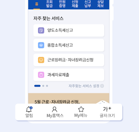 > 주로 세금 신고 및 납부, 국세 중심 업무