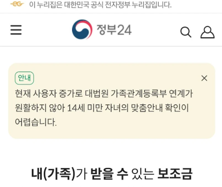 - 보조금24: 나와 가족이 받을 수 있는 정부지원금(보육료, 돌봄, 장학금 등)을 한눈에 확인