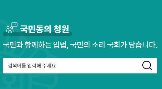 또는 포털에서 '국회 국민동의청원'을 검색해도 동일한 페이지에 접속할 수 있습니다.