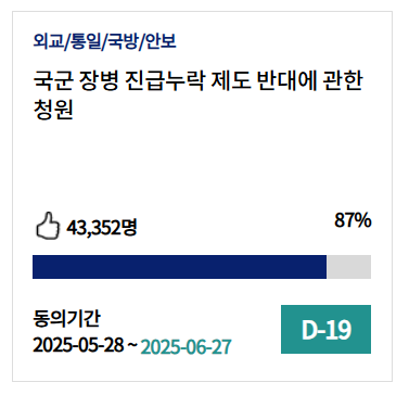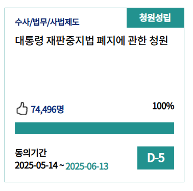 - 동의 부족: 5만 명을 모으지 못하면 자동 폐기됨