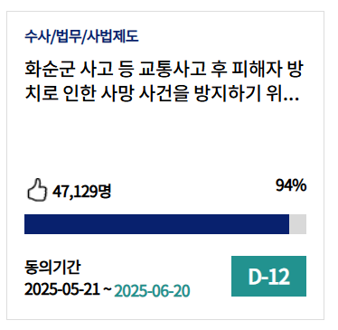 특히 청와대 국민청원이 종료된 이후, 입법과 제도 개선을 요구할 수 있는 실질적 통로는 이 제도 하나뿐입니다.