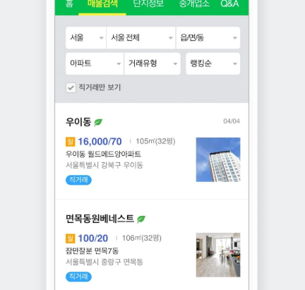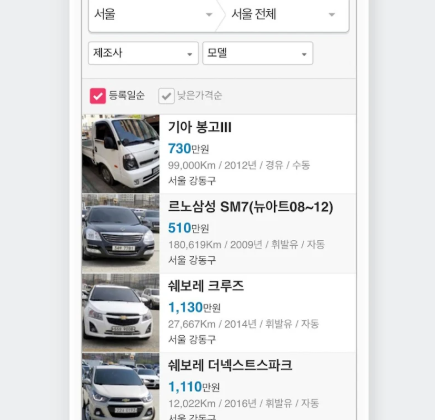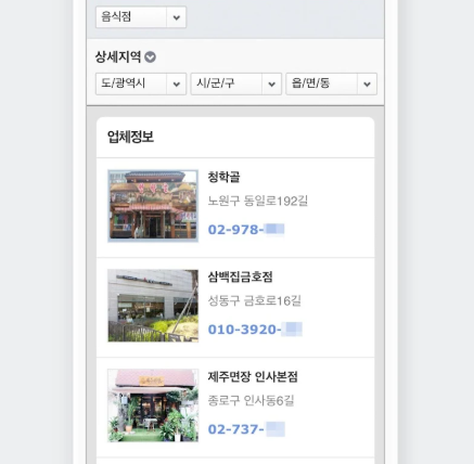 예를 들어 서울이라 해도 '송파구', '강북구', '중구'처럼 구 단위 지역별 필터링이 가능하고